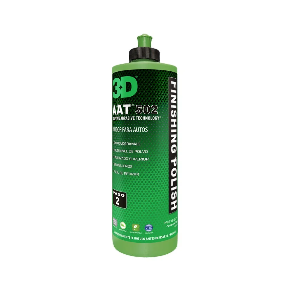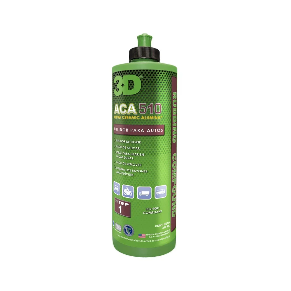 3D ACA NAUTICAL FINISHING POLISH CREMA DE PULIDO 3D - ALPHA CERAMIC ALUMINA Tecnología ALPHA CERAMIC ALUMINA - COMPUESTO DE PULIDO - FINALIZADO - 2•PASO ACA 514 es un compuesto de pulido y finalizado, segundo paso. Diseñado con tecnología Alpha Ceramic Alumina para trabajo en embarcaciones. ACA 514 es un removedor de hologramas de fácil aplicación, con un finalizado superior y real corrección de pintura, sin rellenos. No genera polvo. Biodegradable.