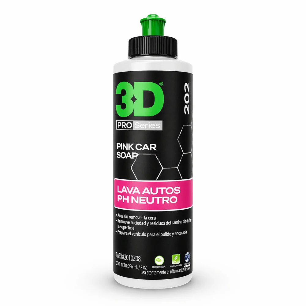 3D Pink Boat Wash SHAMPOO CON PH NEUTRO LAVA SIN REMOVER LA CERA. REMUEVE SUCIEDAD Y RESIDUOS SIN DAÑAR LA SUPERFICIE. PREPARA LA EMBARCACIÓN PARA EL PULIDO Y ENCERADO 3D Pink Boat Wash es un shampoo viscoso súper concentrado que desprende suavemente la tierra y contaminantes sin dañar la pintura. Sus componentes activos encapsulan y remueven los contaminantes adheridos a la pintura sin necesidad de fricción ni esfuerzo, evitando que se produzcan rayas o marcas. Proporciona una espuma muy densa y estable. Este shampoo está especialmente diseñado para no dejar ningún residuo, por lo que es el elegido por profesionales y detailers para limpiar efectivamente la superficie antes de cada trabajo