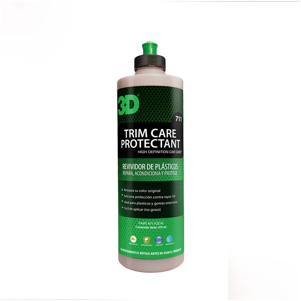 3D ULTRA PROTECTANT es un excelente protector en crema de base acuosa. Su fórmula especialmente diseñada no deja residuos pegajosos, haciendo que la protección y brillo se mantengan por más tiempo. Adicionada con un extracto de silicona de alto grado, proporciona brillo a todos los plásticos, gomas y vinilos exteriores e interiores, renovando su aspecto y embelleciendo al contacto. Puede aplicarse tantas veces como crea necesarias, realzando el brillo en cada aplicación. Es 100% Biodegradable. Está compuesto por aceites naturales y polímeros. Su fórmula no contiene destilados de petróleo ni solventes lo que lo hacen seguro tanto para el usuario como para el medio ambiente.