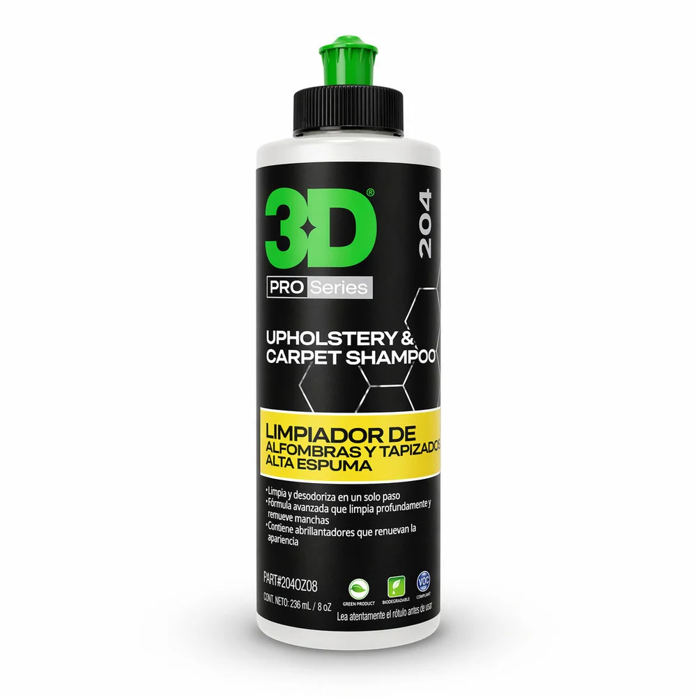 ¿Sabías que el interior de tu auto dice más de vos que su carrocería? Porque la primera impresión también se siente al abrir la puerta. Generalmente, mantener tapizados limpios y con buen aroma parece una tarea compleja. Sin embargo, ahora existe una solución práctica, eficaz y pensada para vos. El Limpia tapizados para autos de 3D combina limpieza profunda y frescura duradera en un solo paso. Además, su fórmula de alta espuma evita el exceso de humedad. Gracias a su poder desodorizante, elimina olores atrapados en alfombras y asientos, dejando un ambiente limpio, seco y confortable. Específicamente diseñado para uso frecuente y seguro. Así como limpia, también realza el color de los tejidos con un revividor de brillo especial que renueva la textura visual de los tapizados. Asimismo, es hipoalergénico, lo cual lo convierte en la opción ideal para familias, mascotas o personas con piel sensible. Efectivamente, sin riesgos ni irritaciones. Por otra parte, no deja residuos, lo que significa que no hay que enjuagar ni esperar demasiado para volver a usar el vehículo. Además de ser práctico, este producto está formulado con ingredientes biodegradables, cuidando no sólo tu auto, sino también el planeta. Su presentación en espuma súper concentrada rinde más de lo que imaginás, haciendo de cada limpieza una inversión real. El limpia tapizados para autos de 3D no es solo un limpiador: es un estímulo para disfrutar tu vehículo como nuevo. Lógicamente, un entorno limpio genera bienestar emocional, mejora tu experiencia al manejar y da una imagen más cuidada y profesional. Tu auto habla de vos. Con 3D, transformás una tarea rutinaria en un momento que te conecta con lo que valorás: limpieza, orden y estilo propio. No esperes más para revitalizar los interiores de tu auto con una solución confiable, rápida y efectiva. Elegí lo que te hace sentir mejor. Especificaciones: Marca: 3D Nombre inglés: Upholstery Cleaner Nombre español: Limpiador de tapicería Presentación: 500 ml