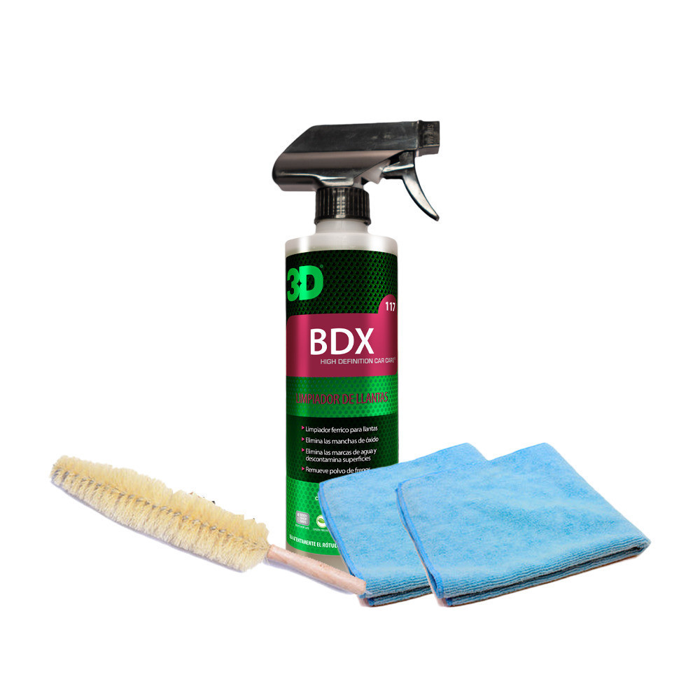 Contenido del Kit 117OZ16 BDX (Removedor de polvo para frenos)Elimina por completo las partículas de hierro y la suciedad adherida a la pintura y ruedas del automóvil. Su fórmula en spray se vuelve púrpura al contacto con partículas de hierro, asegurando una limpieza profunda y segura sin uso de ácidos. Características Principales Eliminación Completa de ContaminantesElimina partículas de hierro, suciedad y manchas de óxido adheridas a las ruedas y pintura, garantizando una limpieza profunda. Fórmula ReactivaAl volverse púrpura en contacto con partículas de hierro, permite visualizar el proceso de limpieza en tiempo real. Sin Ácidos y Equilibrado de pHBDX es seguro para las superficies, ya que no contiene ácidos y tiene un pH balanceado. Reemplaza Productos Químicos AgresivosSu fórmula avanzada limpia eficazmente sin dañar, evitando la necesidad de productos ácidos. Accesorios Incluidos: M-13S Cepillo para Ruedas Pequeño 3DDiseñado para alcanzar y limpiar a fondo entre los radios de las ruedas. G-41B Toallas de Microfibra Suave Azul (2 Unidades)Toallas de microfibra suave ideales para limpieza y secado sin rayones. (Imágenes Ilustrativas)