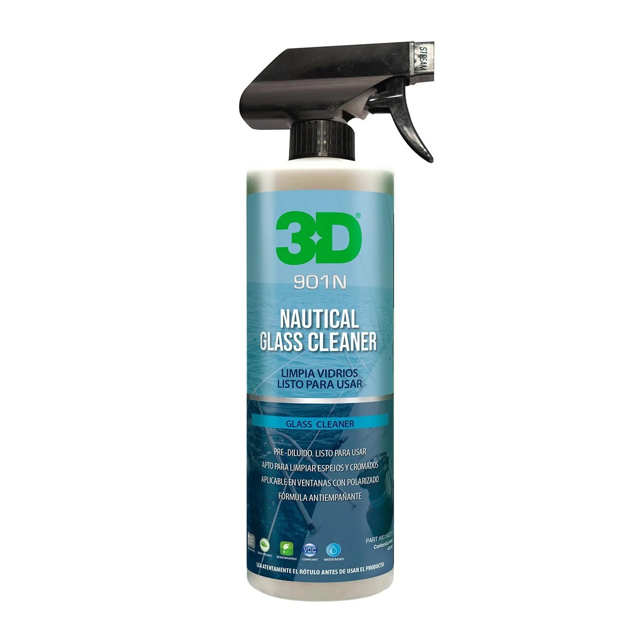 3D Nautical Glass Cleaner LIMPIA VIDRIOS LISTO PARA USAR PRE -DILUIDO. LISTO PARA USAR. APTO PARA LIMPIAR ESPEJOS Y CROMADOS. APLICABLE EN VENTANAS CON POLARIZADO. FÓRMULA ANTIEMPAÑANTE Limpiador de vidrio a base de etanol, elimina la grasitud y toda la suciedad pegada. Está hecho de ingredientes naturales de acción rápida, puede rociar directamente el limpiador en el vidrio de la embarcación utilizando una toalla de microfibra limpia y limpiar para no generar rayas. Está especialmente formulado para deshacerse de la grasa y la suciedad resistente.