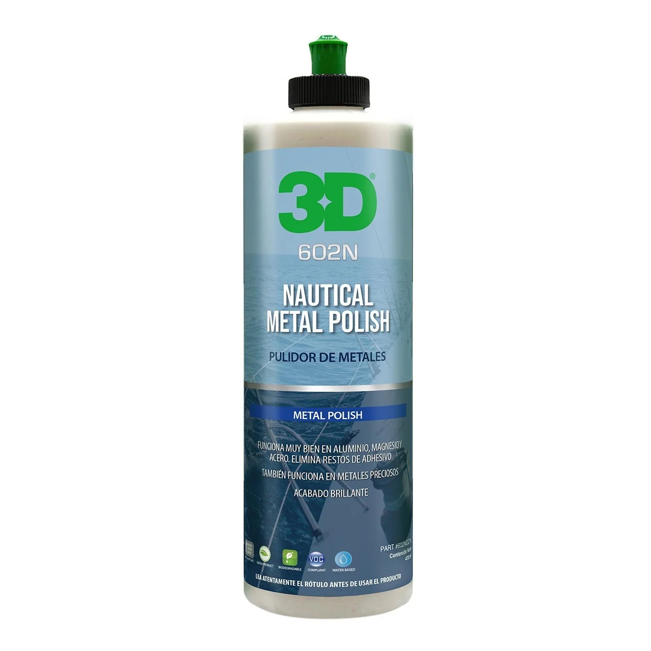 3D Nautical Metal Polish PULIDOR DE METALES FUNCIONA MUY BIEN EN ALUMINIO, MAGNESIO Y ACERO. ELIMINA RESTOS DE ADHESIVO. TAMBIÉN FUNCIONA EN METALES PRECIOSOS. ACABADO BRILLANTE Formulado para limpieza profunda de todo tipo de metales desgastados y oxidados. Es excelente para la plata, oro, cromo y cobre. No contiene amoníaco o químicos dañinos.
