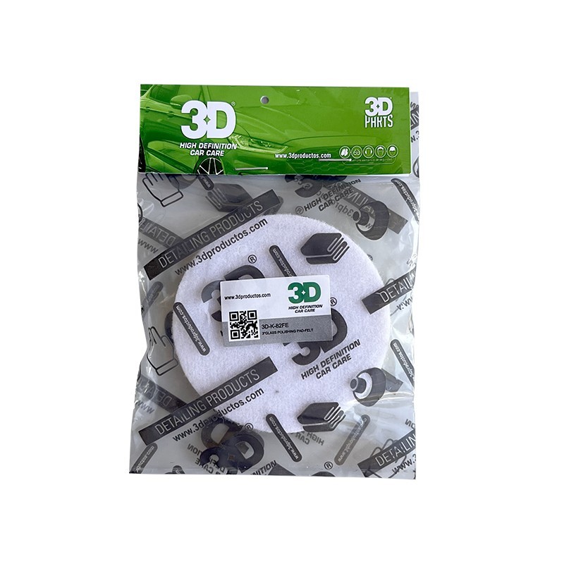 Contenido del Kit: 521OZ16 - 3D Glass PolishPulimento específico para vidrios, ideal para eliminar manchas, marcas de agua y contaminantes en las superficies de vidrio. Proporciona un acabado brillante y claro sin rayar. K-80FE - 3D Glass Polishing Pad - FeltAlmohadilla de fieltro diseñada especialmente para el pulido de vidrios. Ayuda a aplicar el producto de manera uniforme, garantizando un trabajo eficiente y sin dañar la superficie del vidrio. (Imágenes Ilustrativas)