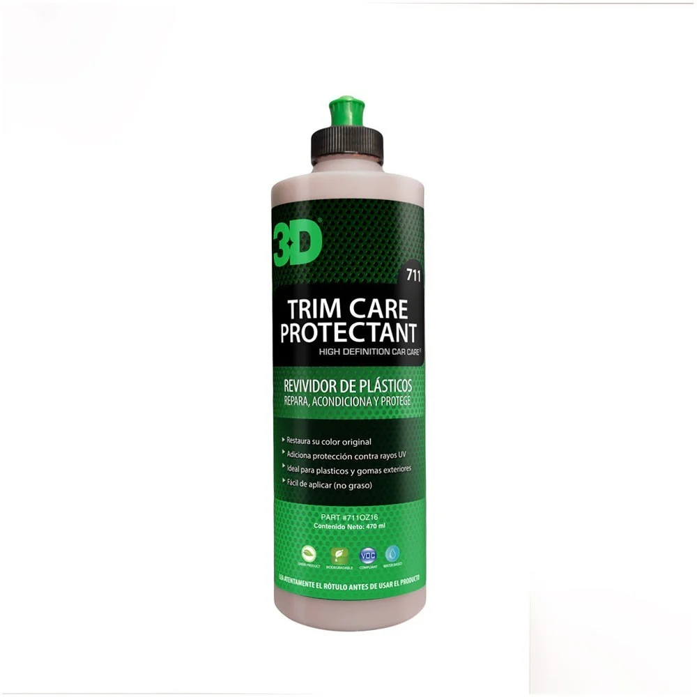 3D ULTRA PROTECTANT es un excelente protector en crema de base acuosa. Su fórmula especialmente diseñada no deja residuos pegajosos, haciendo que la protección y brillo se mantengan por más tiempo. Adicionada con un extracto de silicona de alto grado, proporciona brillo a todos los plásticos, gomas y vinilos exteriores e interiores, renovando su aspecto y embelleciendo al contacto. Puede aplicarse tantas veces como crea necesarias, realzando el brillo en cada aplicación. Es 100% Biodegradable. Está compuesto por aceites naturales y polímeros. Su fórmula no contiene destilados de petróleo ni solventes lo que lo hacen seguro tanto para el usuario como para el medio ambiente.