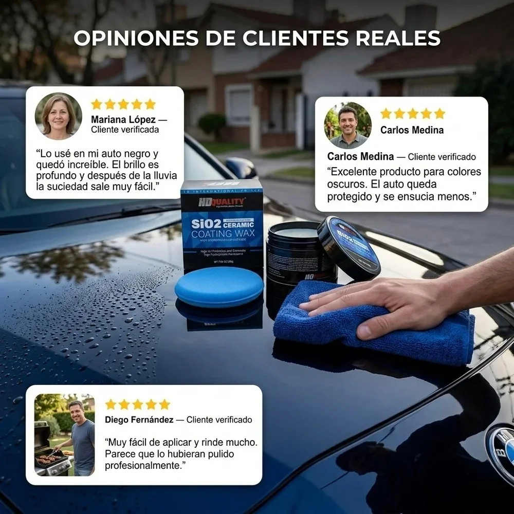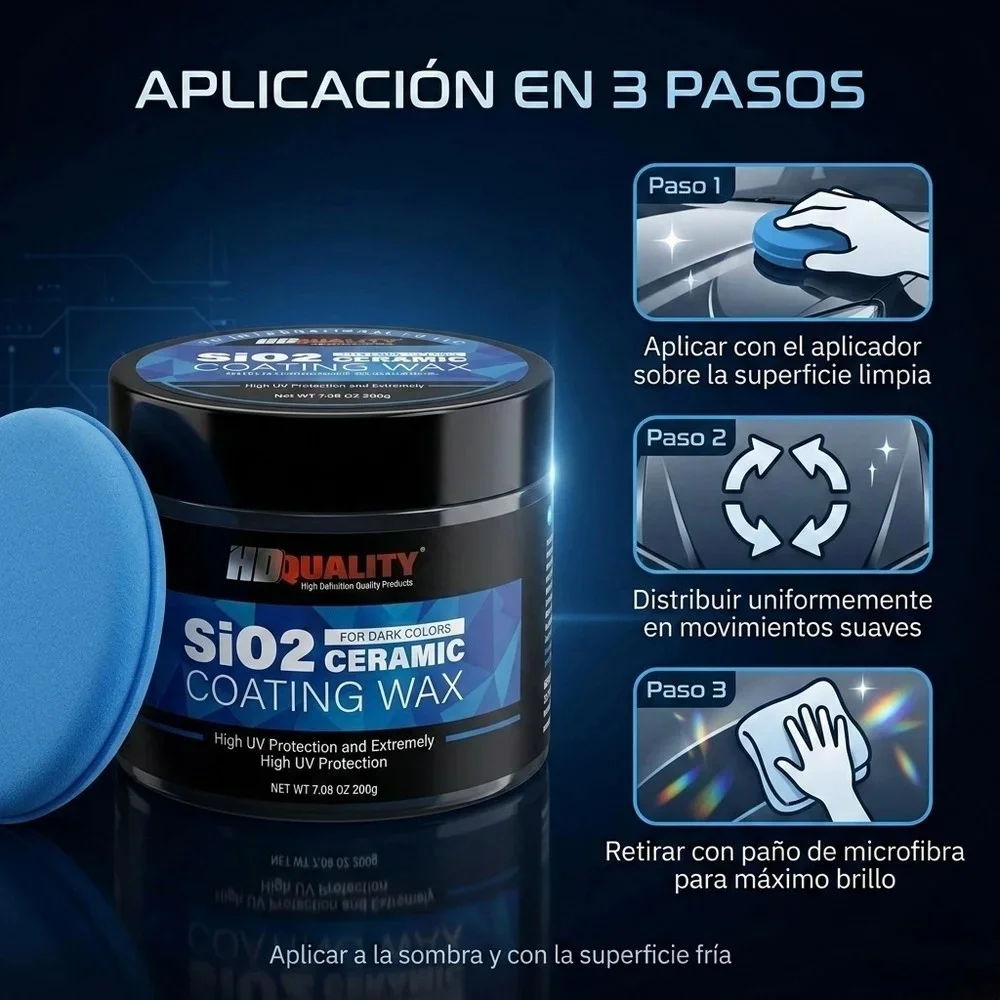 Su fórmula altamente confiable forma una barrera cerámica que brinda protección duradera. Ideado para realzar el brillo de los colores oscuros. A su vez protege eficazmente la pintura de su auto contra las manchas y agentes externos. Fácil de usar. Con sólo aplicar y retirar, el brillo de la pintura se revelará al instante.