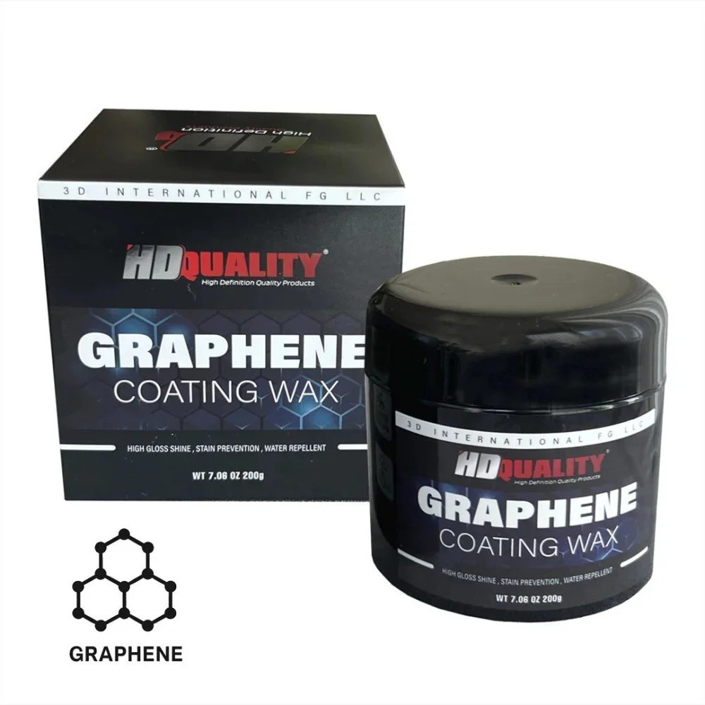Nuestra cera de última generación incorpora una fórmula avanzada de grafeno que crea una unión molecular increíblemente fuerte y resistente con la pintura de tu vehículo. Esta tecnología no solo garantiza una capa de protección duradera contra los elementos, sino que también realza la estética de tu auto con un brillo intenso, profundo y definido que no pasará desapercibido.