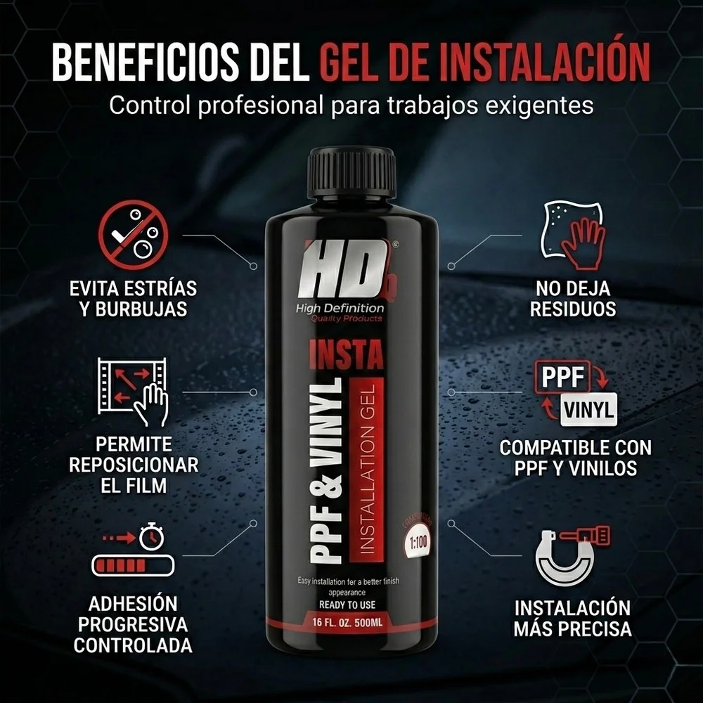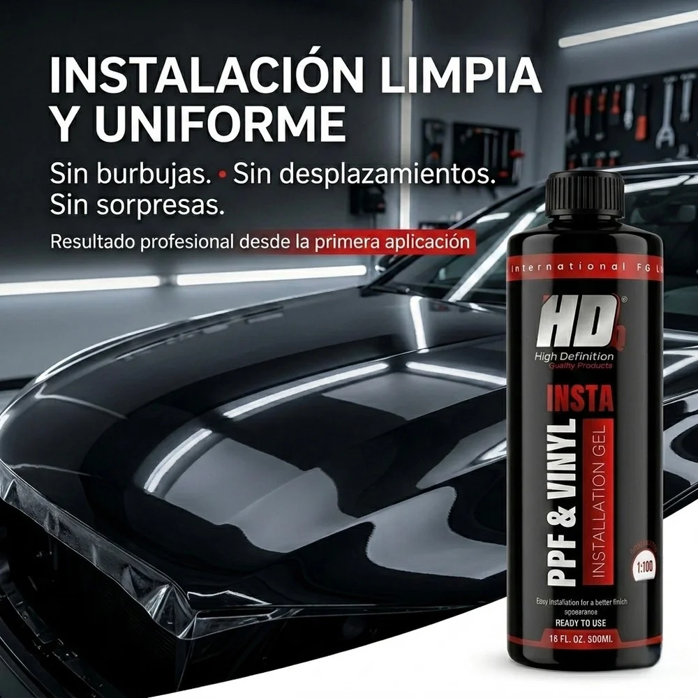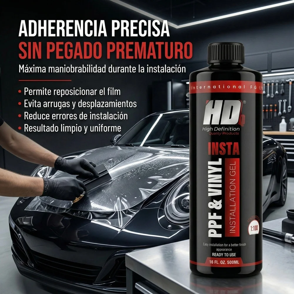 El gel de instalación PPF & VINYL está diseñado para una máxima maniobrabilidad durante la instalación del PPF. Está especialmente formulado para lograr una adhesión más rápida del punto de adherencia. Esta solución transparente y viscosa ayuda a eliminar la posibilidad de problemas comunes de instalación, como las estrías, la adherencia prematura y la acumulación de residuos. También ayuda a ralentizar la evaporación y el escurrimiento de la solución por la superficie.