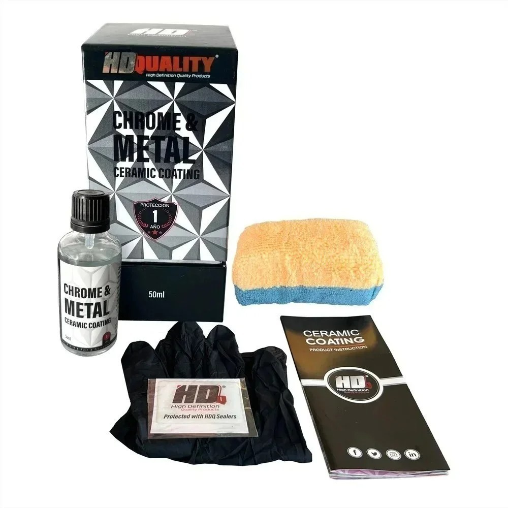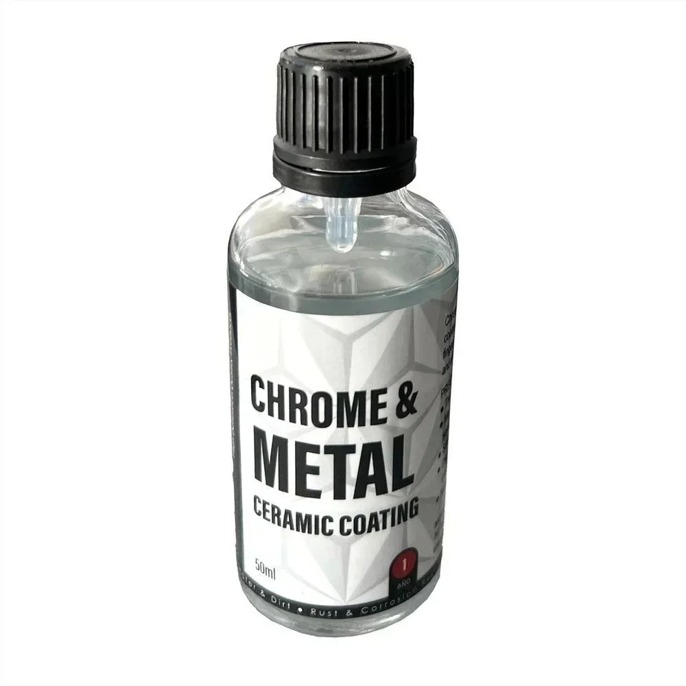 Chrome & Metal Ceramic Coating es un sellador único con nanotecnología y fácil de aplicar sobre metal pulido y cromo. Protege contra huellas dactilares, manchas, óxido y corrosión, y mantiene el brillo reflectante durante mucho tiempo.