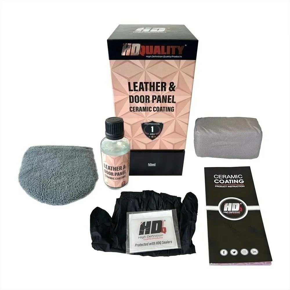 Leather & Door Panel Ceramic Coating es un revestimiento protector autolimpiable y antiincrustante que restaura el aspecto de las superficies, conserva su textura original, color y apariencia vibrantes, protegiéndolas contra la suciedad y las manchas.