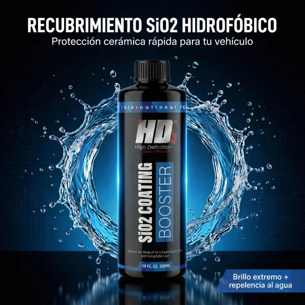 SiO2 Coating Booster es un recubrimiento hidrofóbico en spray que se aplica fácilmente después de lavar el coche. Esta fórmula revolucionaria se aplica en solo minutos y deja la pintura brillante, repeliendo la suciedad y el agua durante semanas gracias a su efecto hidrofóbico. Perfecto para aumentar el brillo y la durabilidad de los vehículos previamente tratados con un recubrimiento de SiO2. Su efecto autolimpiador reducirá la cantidad de lavados rutinarios. Apto para pintura, llantas, cristales, vinilo y película protectora de pintura.