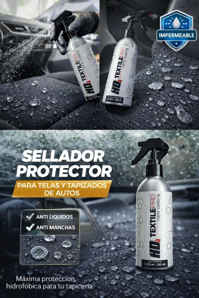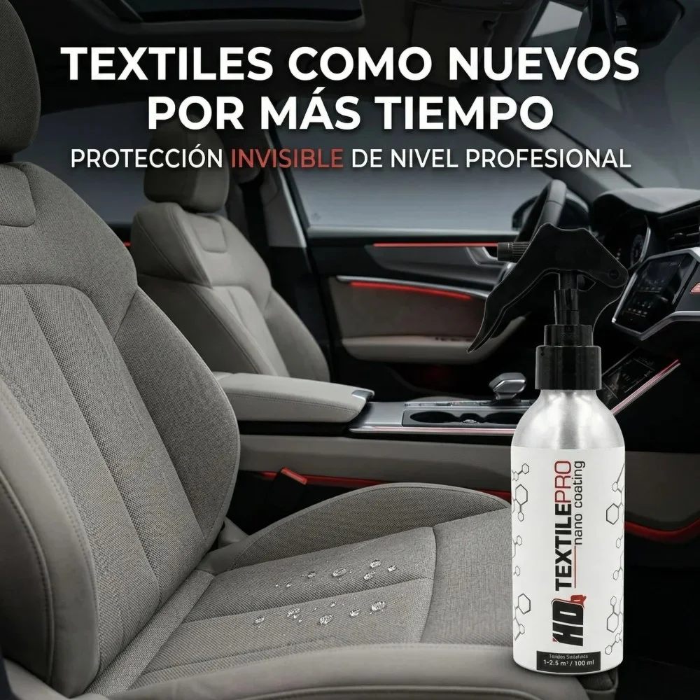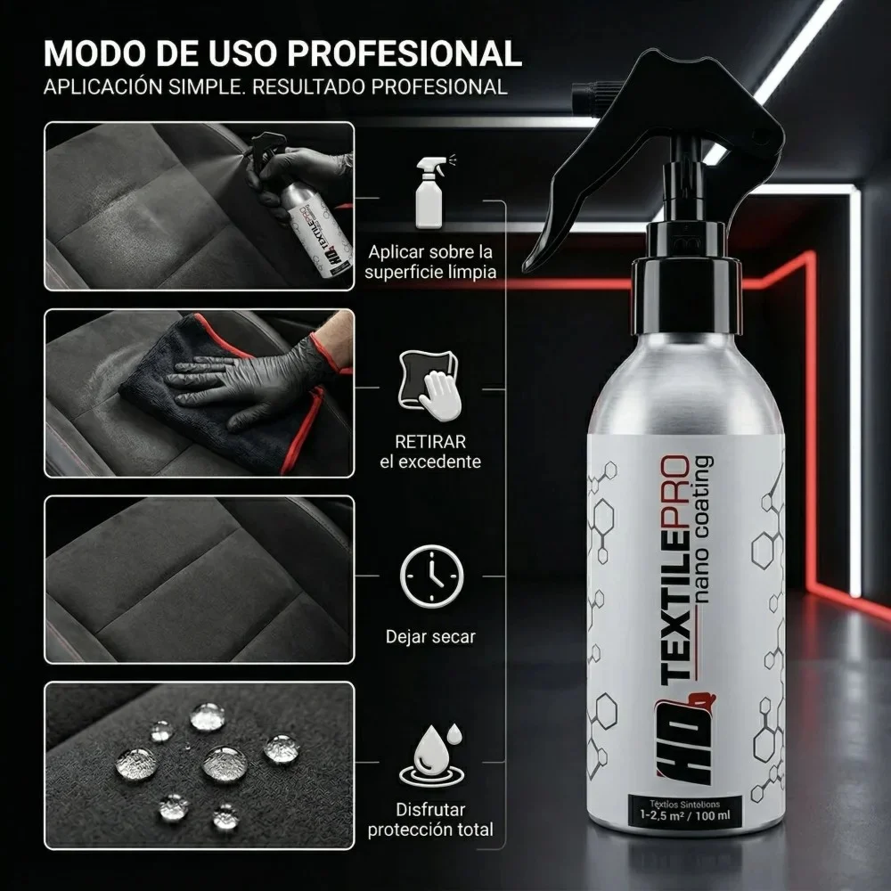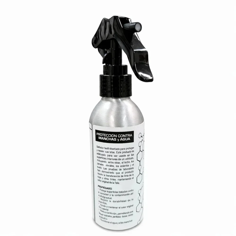 Está diseñado para aplicaciones en interiores de vehículos y superficies textiles sintéticas, brindando una protección duradera contra agua, suciedad y manchas, y facilitando la limpieza diaria.