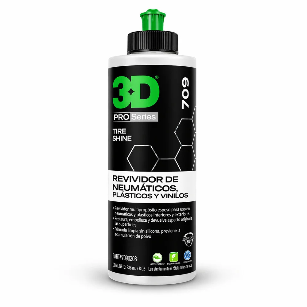 Tire Shine es un embellecedor efectivo y económico para utilizar en toda superficie que se puede usar en una variedad de aplicaciones. Funciona muy bien tanto en superficies exteriores como neumáticos y molduras, así como en tableros interiores, asientos que no son de tela, molduras o en cualquier otro lugar donde se desee un gran brillo. Universal Protectant protege, embellece y devuelve la vida a las superficies sin dejar ningún residuo pegajoso. Este producto se seca con un acabado brillante duradero, evita la acumulación de polvo. A diferencia de otros embellecedores. También protege contra los rayos UV que pueden resecar y agrietar las superficies de cuero y vinilo, tableros y asientos de cuero. De hecho, con el uso regular, preservará sus superficies suaves durante mucho tiempo.